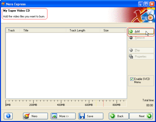 Dans la fenêtre suivante, cliquez sur "Add" pour ajouter le fichier .mpg.